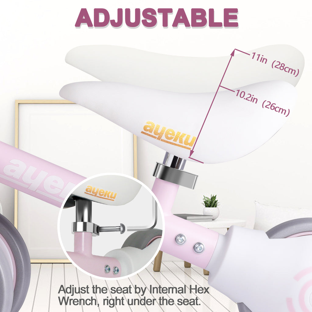 AyeKu Baby Balance Bike 1-3 yrs Toddler Silent Wheels Adjustable Soft Seat Pink