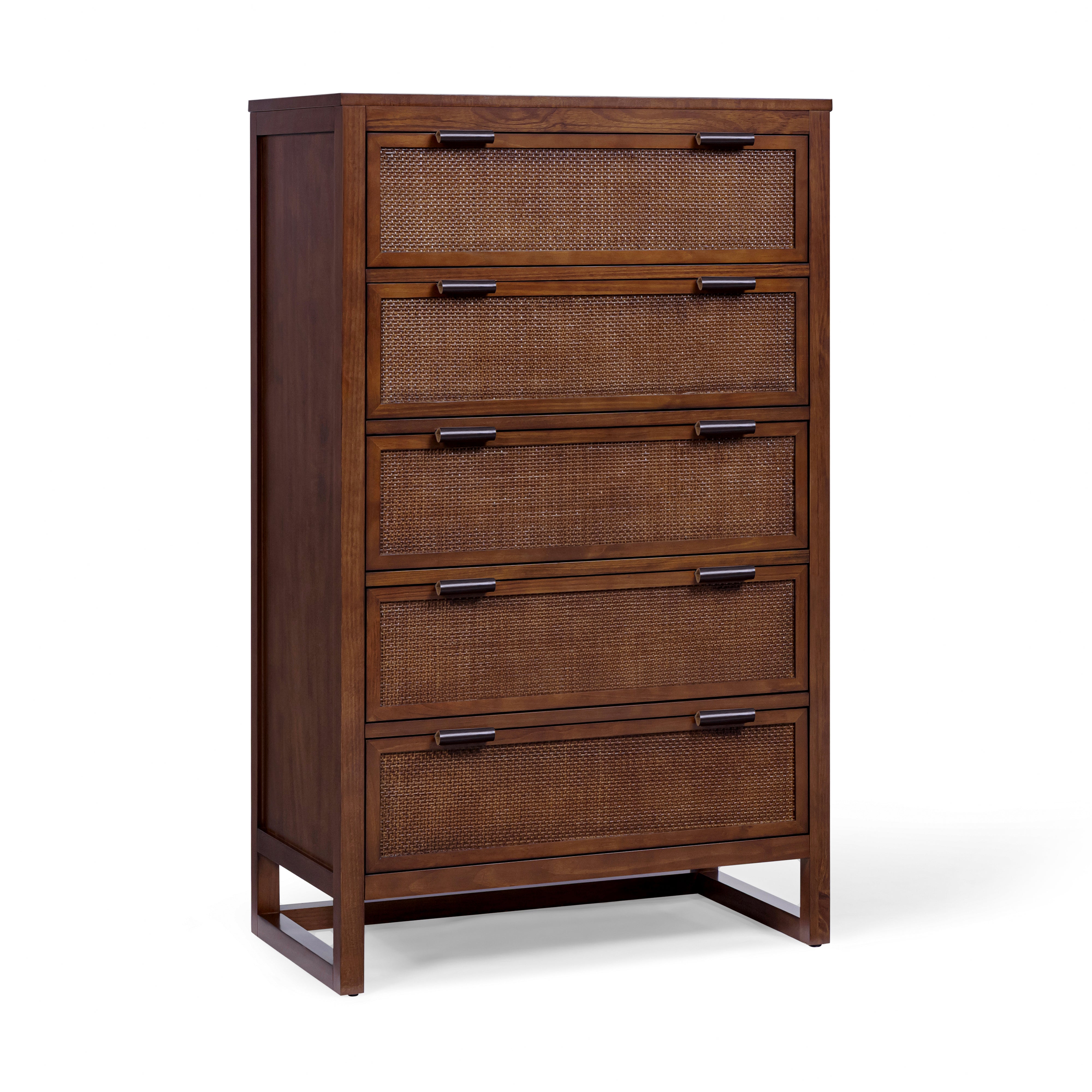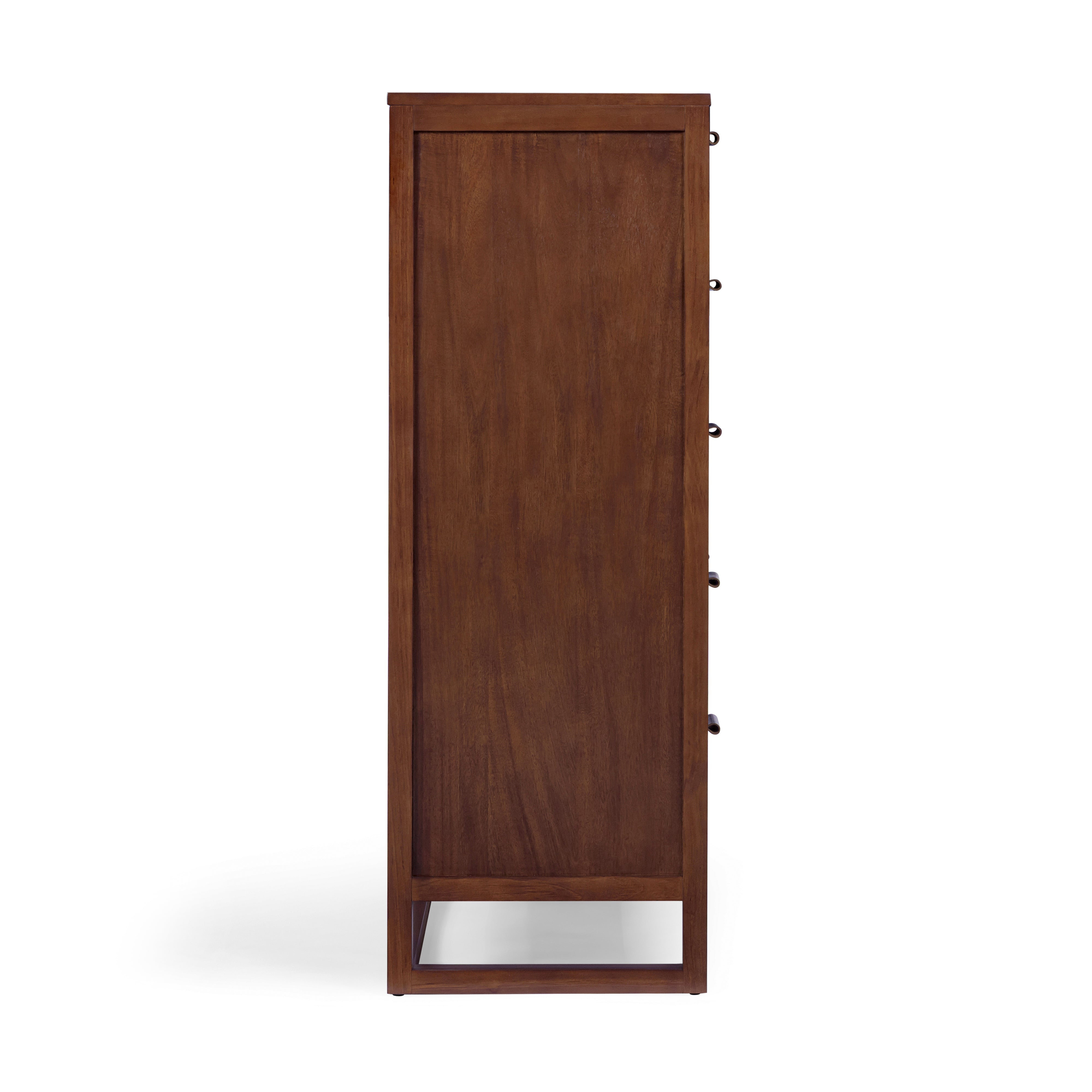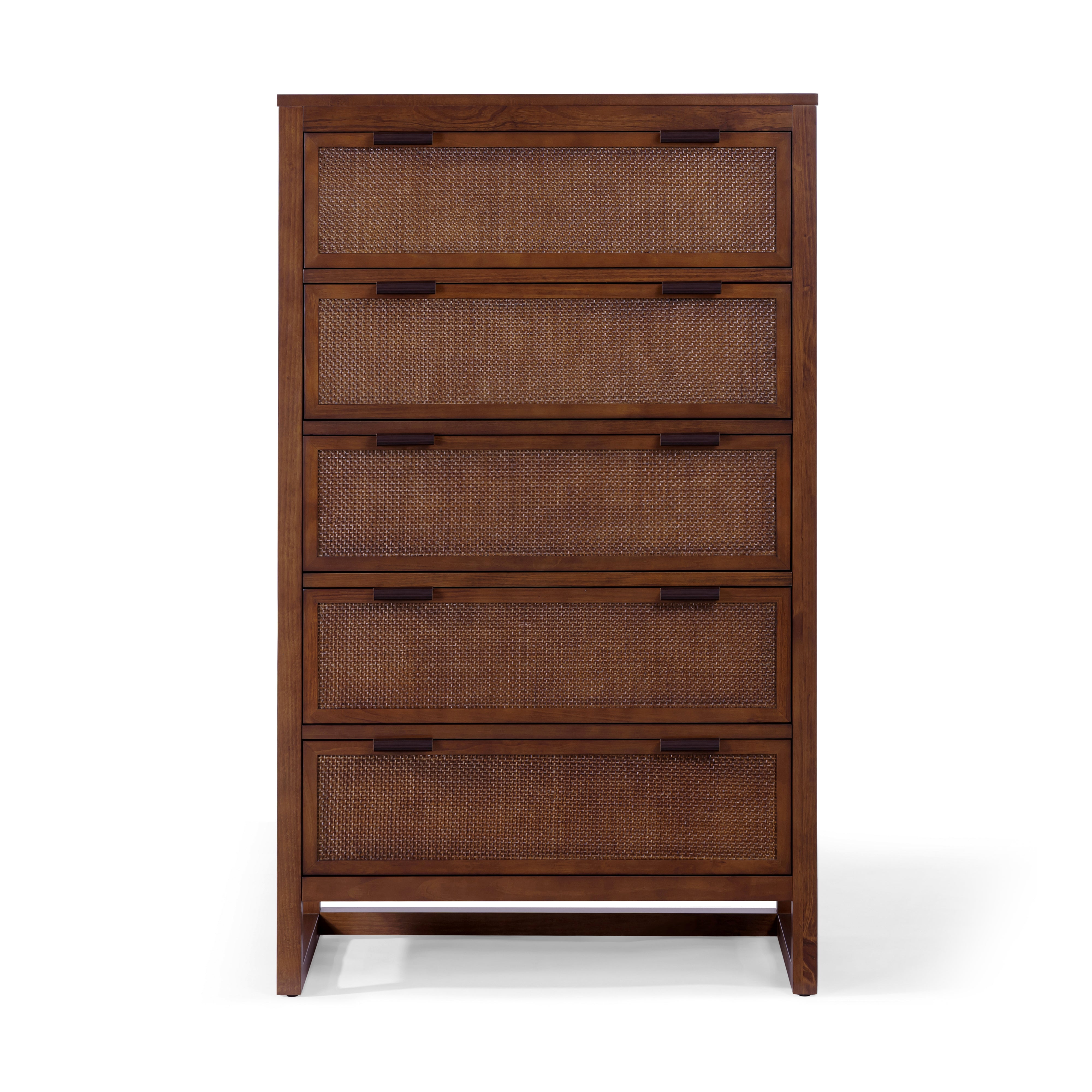 Rattan Drawer Detailing: Natural rattan insets add texture and visual softness, balancing the clean-lined dresser silhouette.