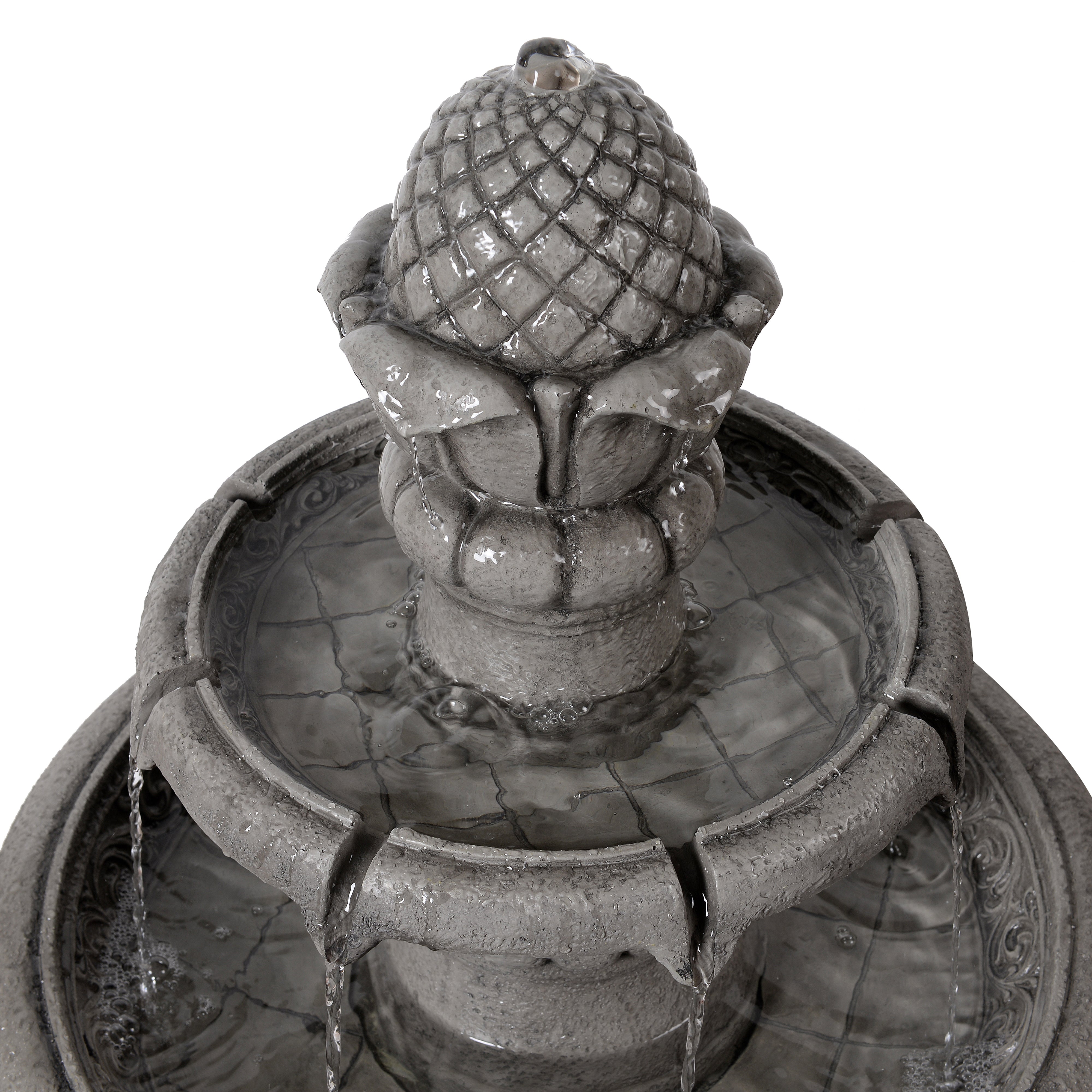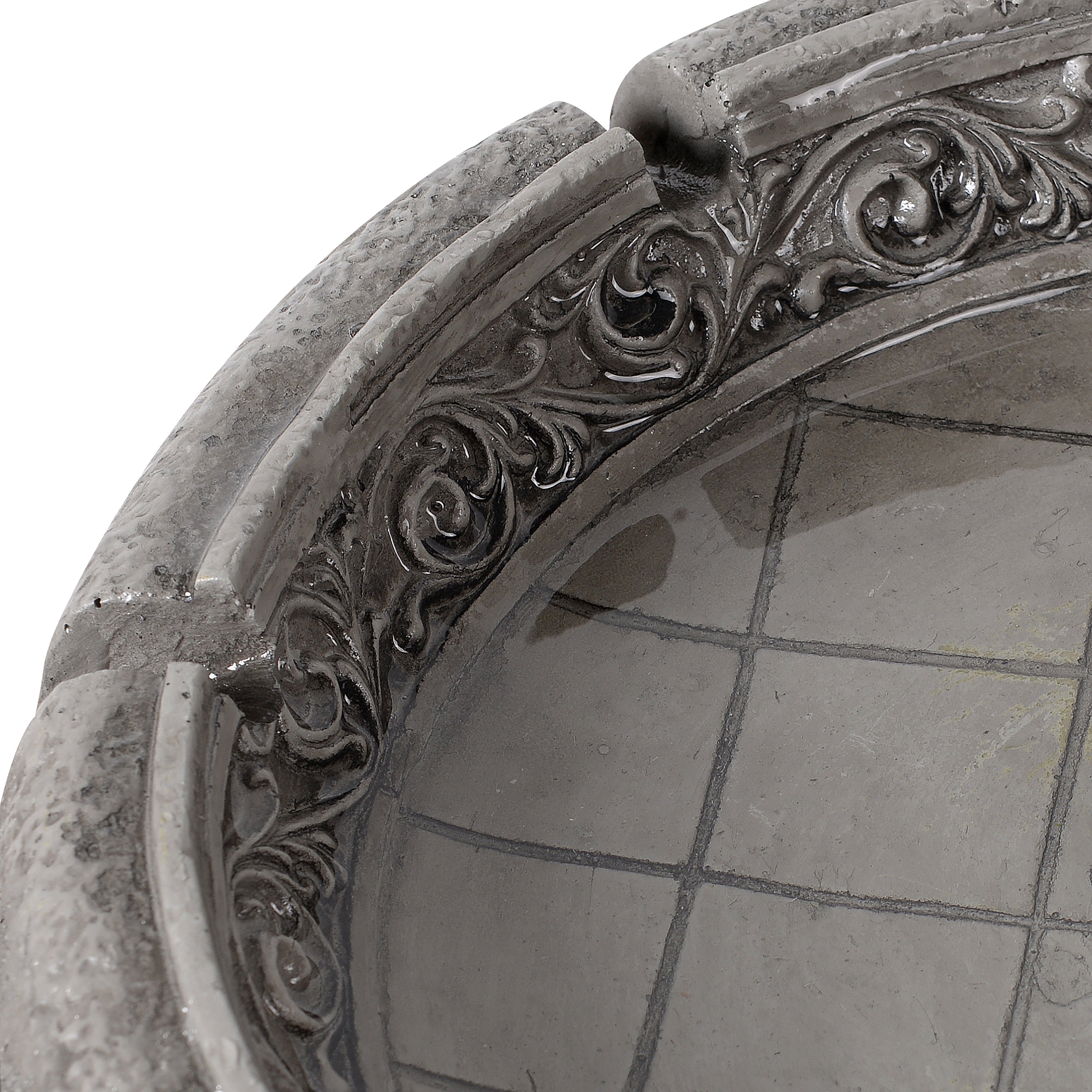 The soft grey finish pairs easily with greenery, paving and a wide range of garden styles. Installation is simple. Place the fountain on a stable, level surface, fill with clean water, connect the pump and plug into a GFCI-protected outdoor socket. The recirculating pump ensures continuous flow without excessive water use.