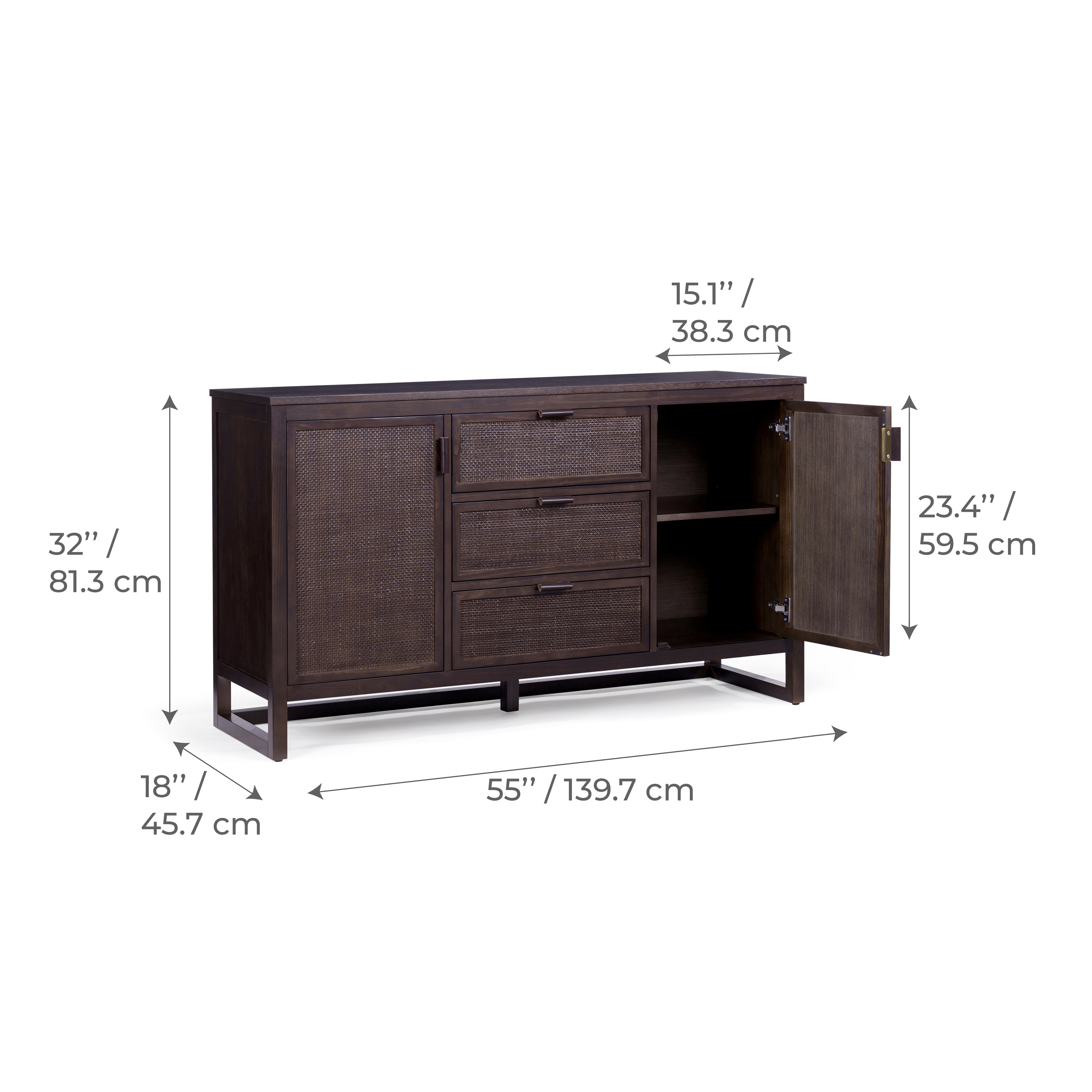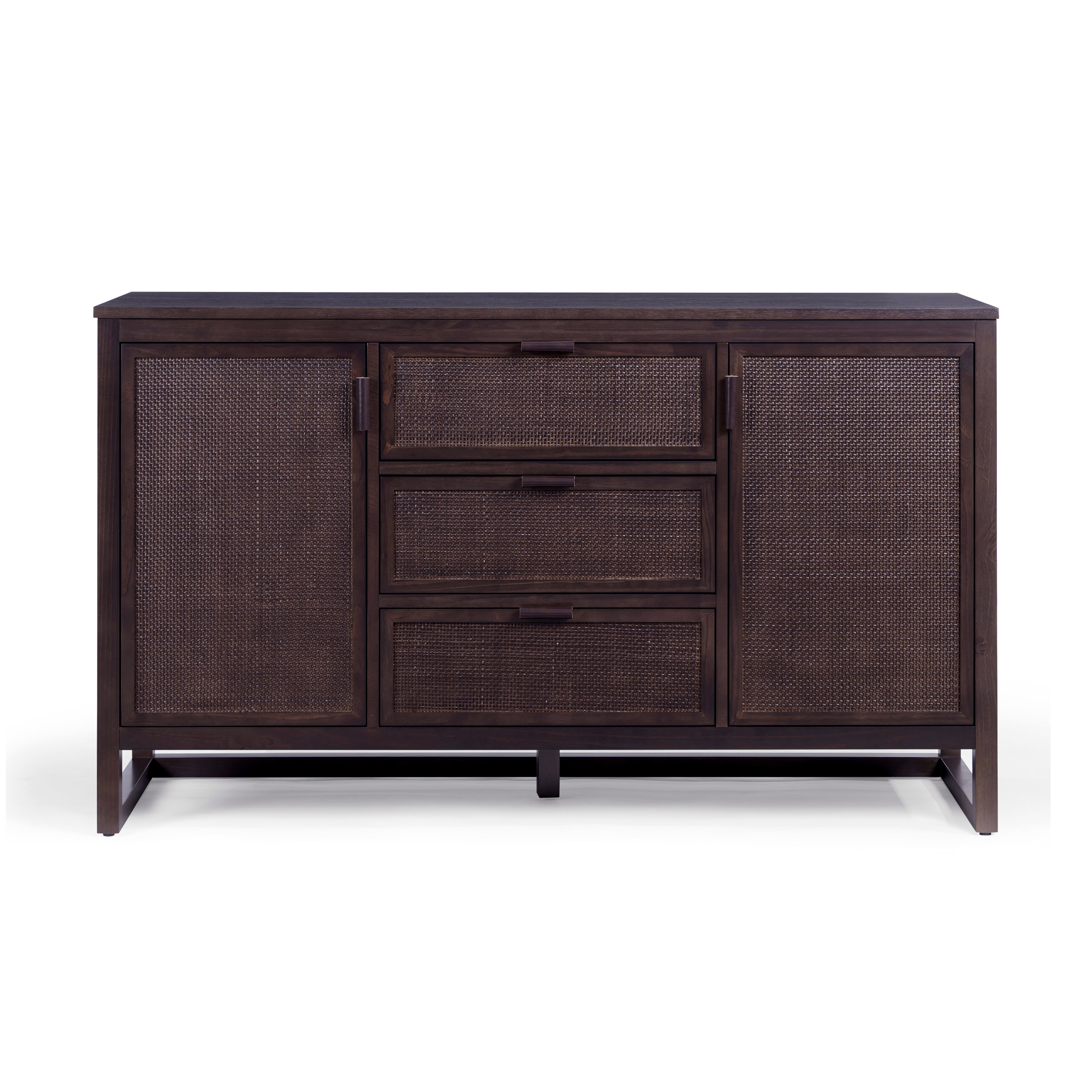 Teamson Home Hatteras Sideboard 140 cm wide Drawers Rattan Inset Doors, Espresso