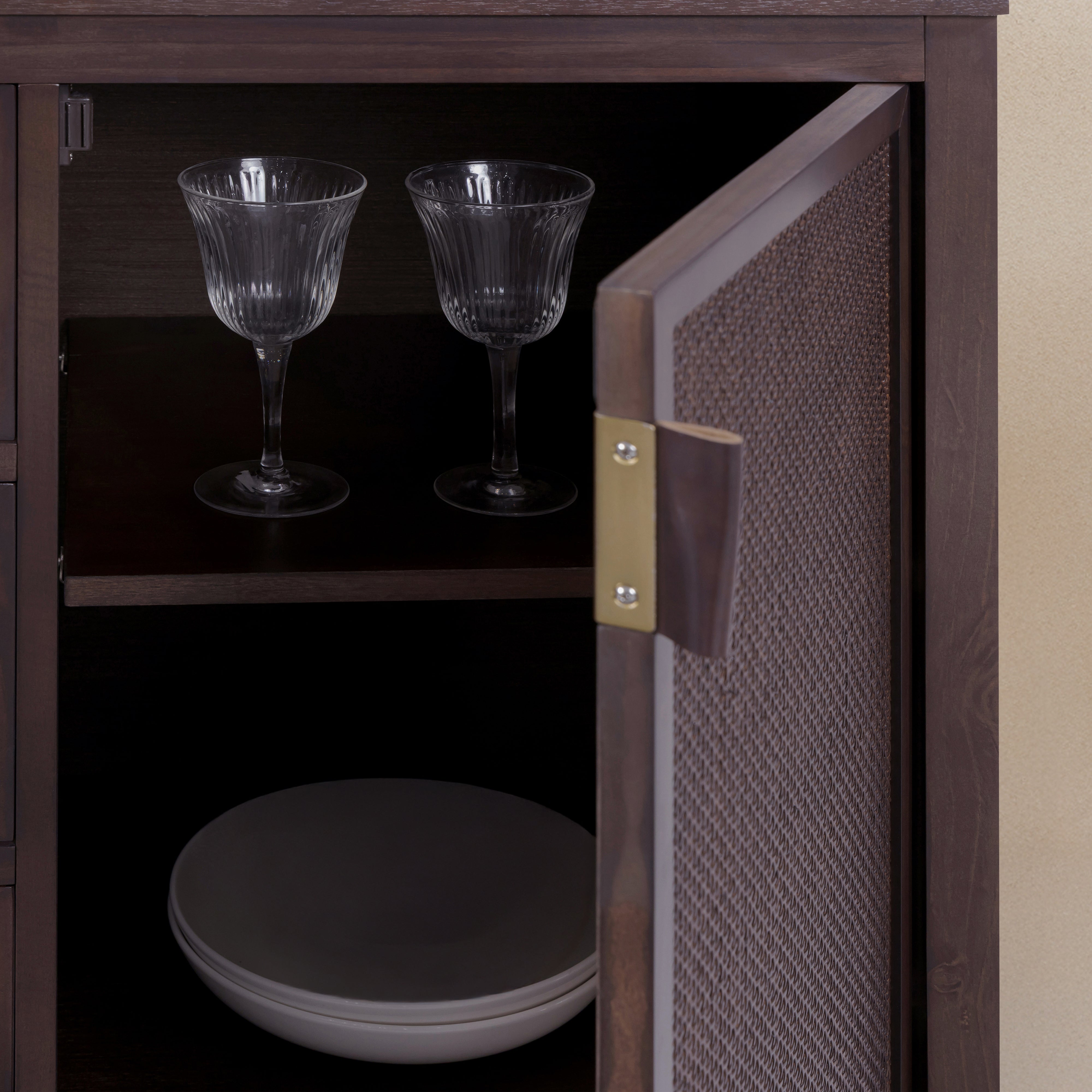 Rattan-inlay doors soften the overall look, introducing texture and natural character. Soft-close doors and stable feet support comfortable daily use. Designed for dining rooms, living areas or hallways, this sideboard keeps clutter neatly contained while enhancing the look and function of your space.