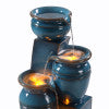 Solar-powered decorative 4-tier outdoor water fountain in a shiny blue finish with brown distressing